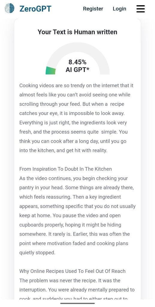 As the video continues, you mentally begin checking your pantry. Some things are already there, which feels reassuring. Then a key ingredient appears, something specific that you do not usually keep at home. You pause the video and open cupboards properly, hoping it might be hiding somewhere. It rarely is. Earlier, this was often the point where motivation faded and cooking plans quietly stopped.